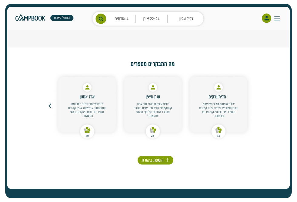 "Our goal is to become the largest and most desirable website for camping in Israel. “Campbook” will gather all campsites in Israel and service both campers and campsites owners."